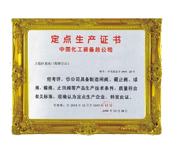中國化工裝備總公司定點生產(chǎn)證書